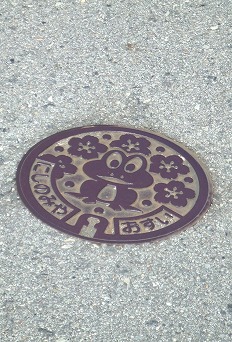 階段を上って坂道を登っていくと、作中に良く出てくるカエルのマンホールも発見。至る所にいました。