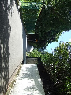 写真からみて奥へ続く道へと入ると、長門のマンションに行けます。